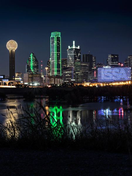 Construction in Dallas, TX on the new Margaret McDermott Bridge with the Margaret Hunt Hill standing tall in the background.